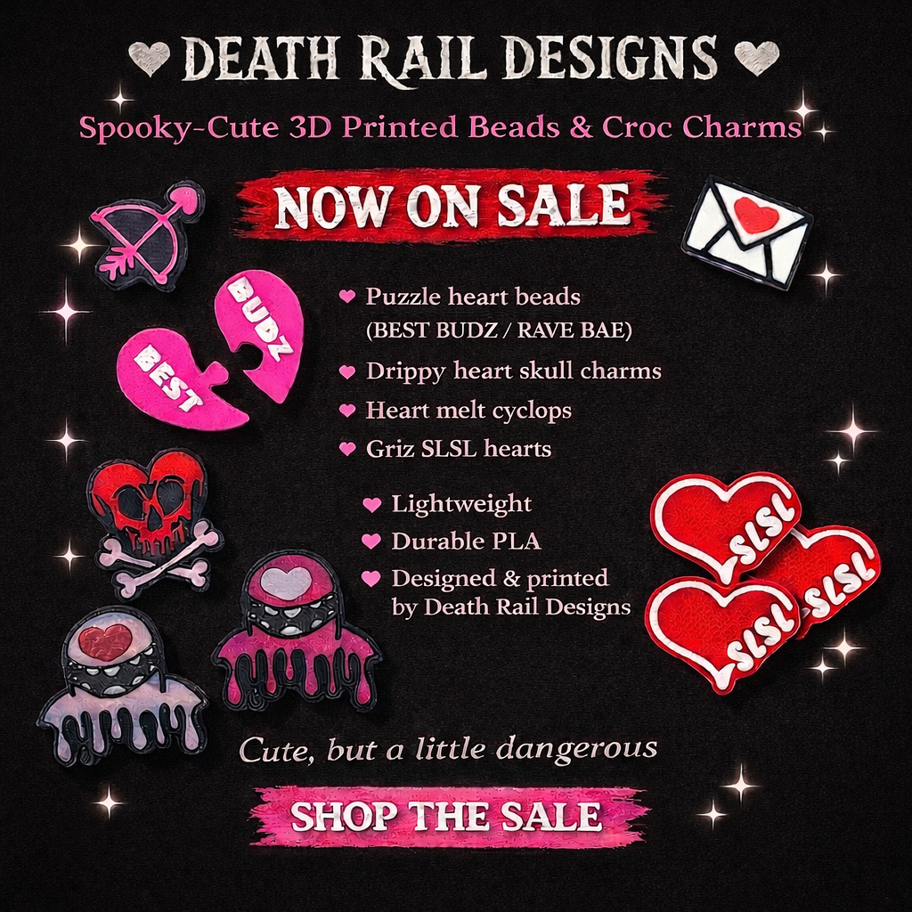 3D Printed EDM-inspired kandi beads and shoe charms for clog shoes.