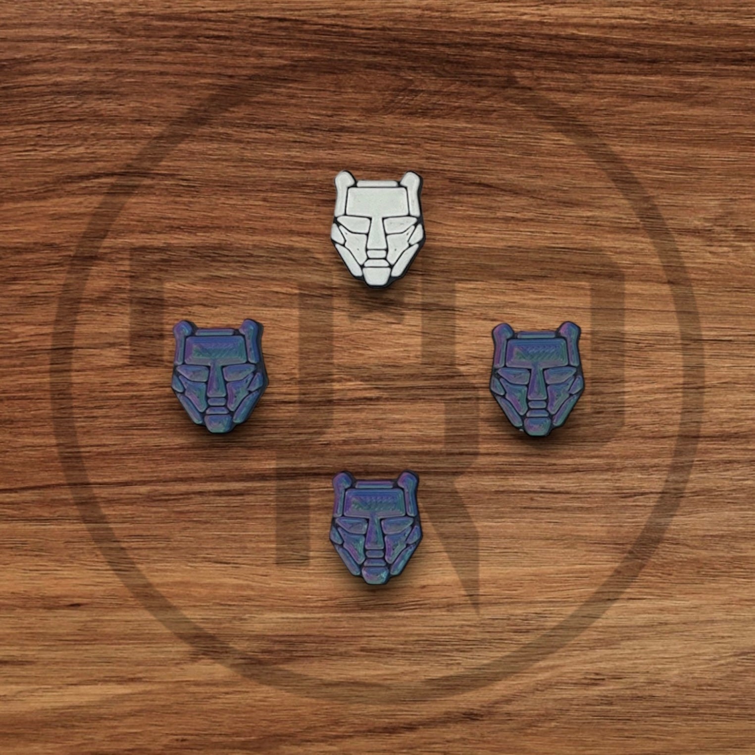 3D printed BTSM Black Tiger Sex Machine tiger helmet kandi beads and shoe charms.