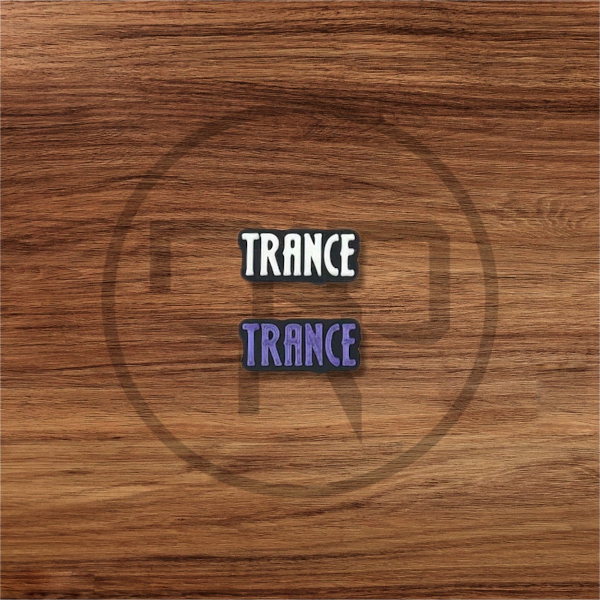3D printed "trance" kandi beads and shoe charms.